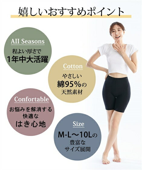 【15%オフクーポン×ポイント10倍】 レギンス・スパッツ・オーバーパンツ (3L〜4L-5L〜6L) 大きいサイズ 深ばき 綿混 3分丈 オーバーパンツ 3枚組 ニッセン nissen インナー 下着 レディース